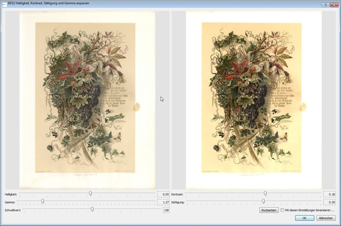 Abbildung: BCS-2® Office, Funktion „Image-Parameter“ (Bildquelle: „Liebesfrühling“ F. Rückert, Sauerländer Verlag Frankfurt/Main)